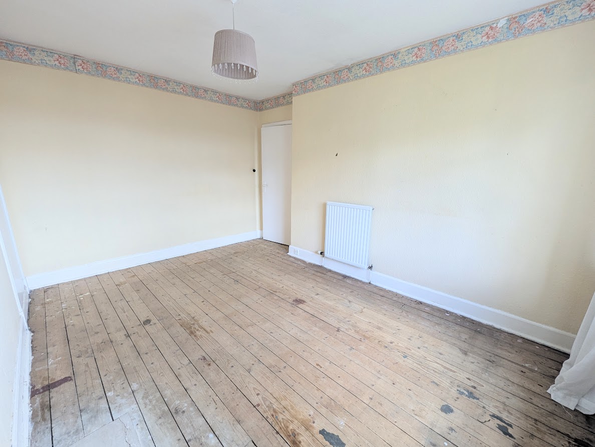 Bedroom 2 is also a double bedroom with window to the front. Built-in cupboard with shelves.