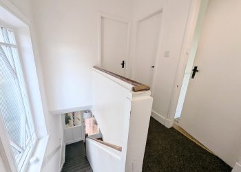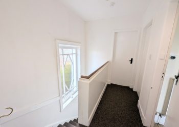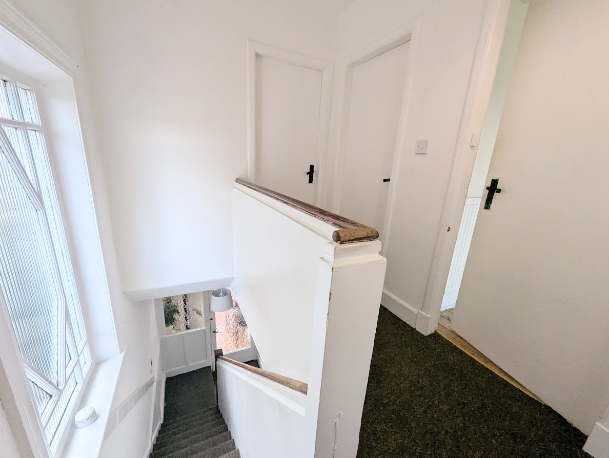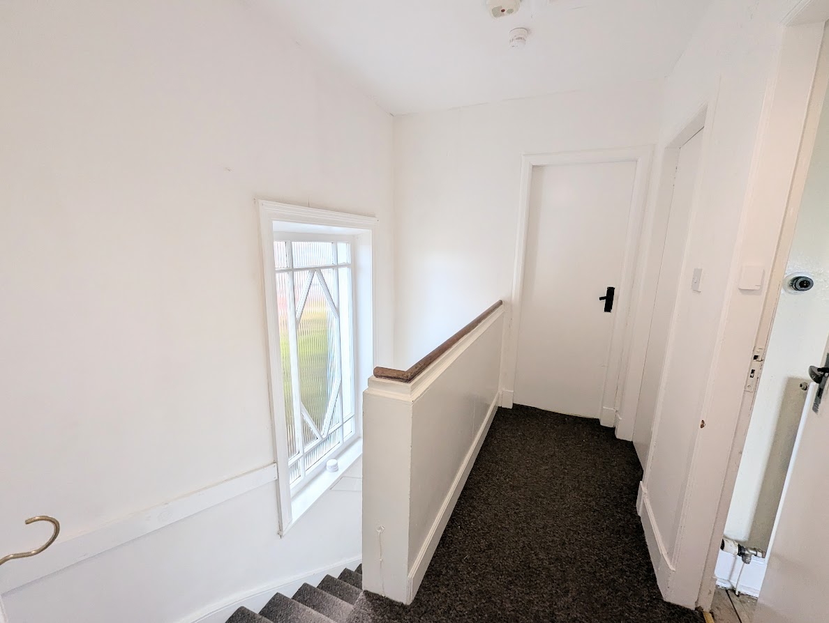 Stairs to first floor with hand rail and bannister. Large window to the side. On the landing there are doors to shower room and three bedrooms. Loft hatch to floored loft with window.