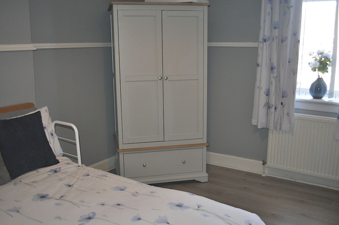 Double glazed window to the front with fitted blinds and deep set sill. Central heating radiator. Freestanding electric fireplace. Large walk in cupboard measuring 12’ 10” X 3’ 5”. Telephone point. TV aerial point. 6 x 13 amp power points. Wood effect laminate flooring. Cornicing. Dado rail. Door to the main hallway.