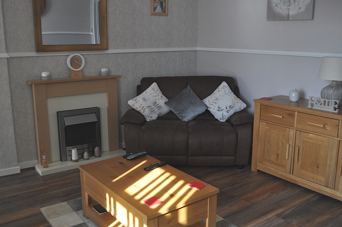 UPVC double glazed panelled door to the entrance porch with double glazed window with fitted blinds. Wood effect laminate flooring. One step up to door to the lounge.