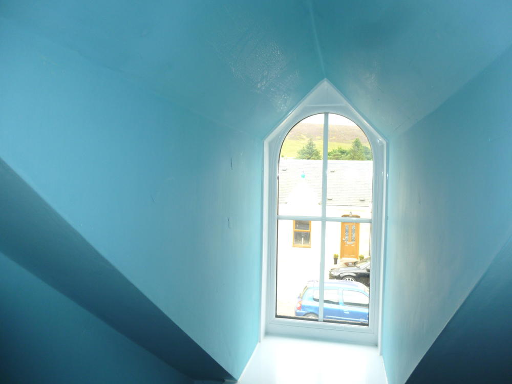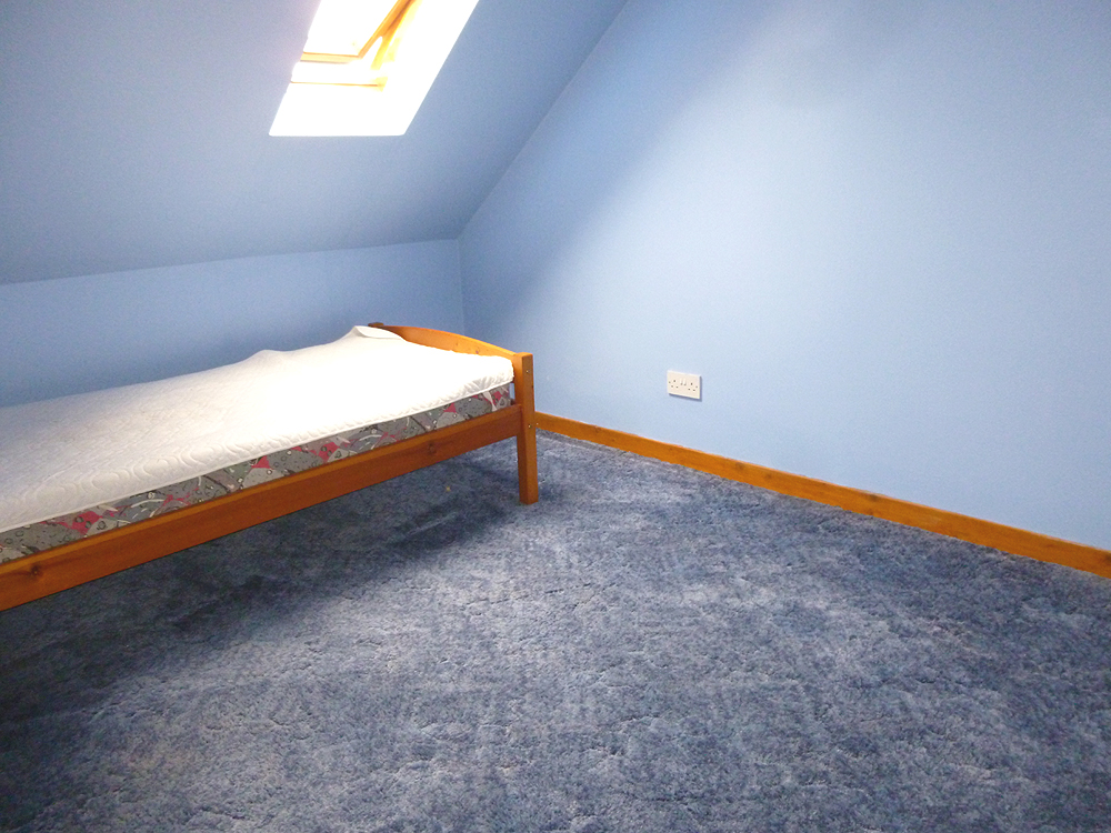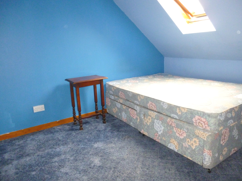 Double glazed Velux window with views over the village to the hills beyond. Fitted carpet. 4 x 13 amp power points. Coombed ceilings.