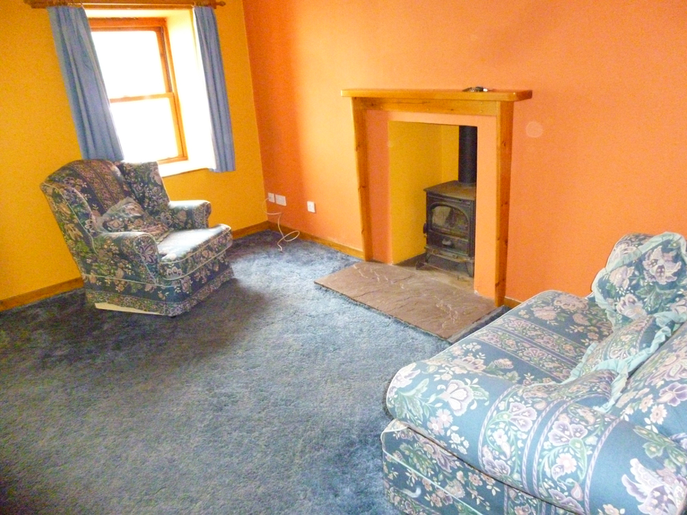 Measurements include a large under stairs cupboard. A feature of this room is the multi fuel stove inset on sandstone hearth. Double glazed window to the front with deep set sill. Electric radiator. TV aerial point. 5 x 13 amp power points. Fitted carpet. Door through to the rear hallway.
