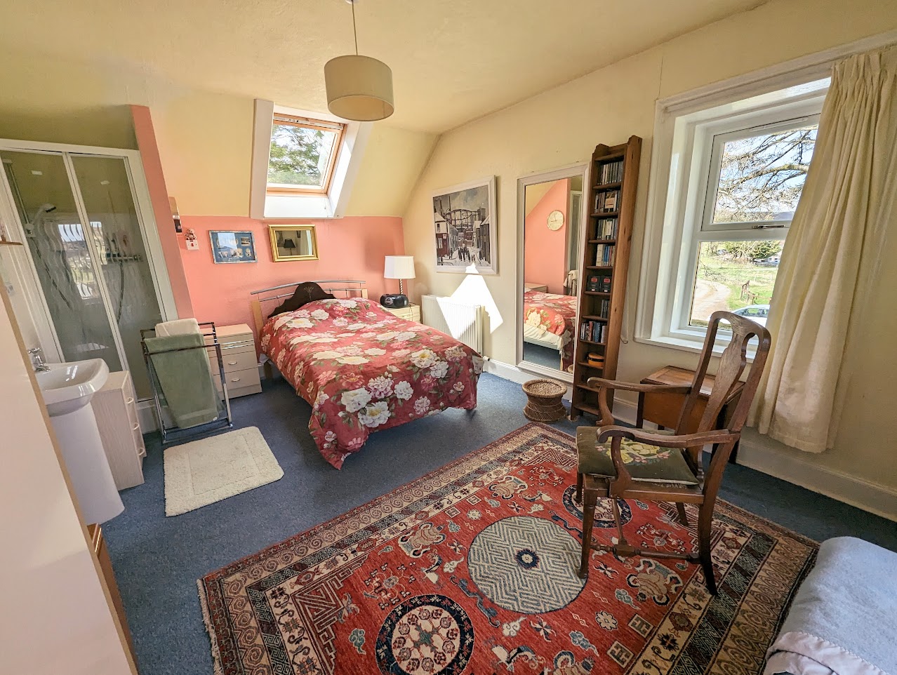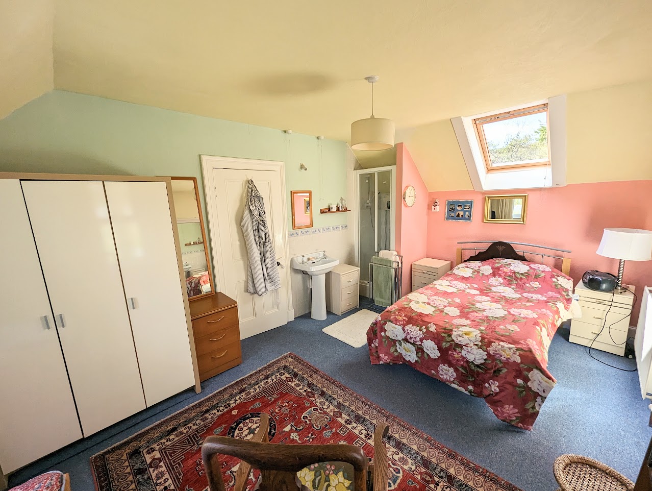 Bedroom 3 is also a large bedroom with window to the front and Velux window to the rear.. Shower cubicle and
