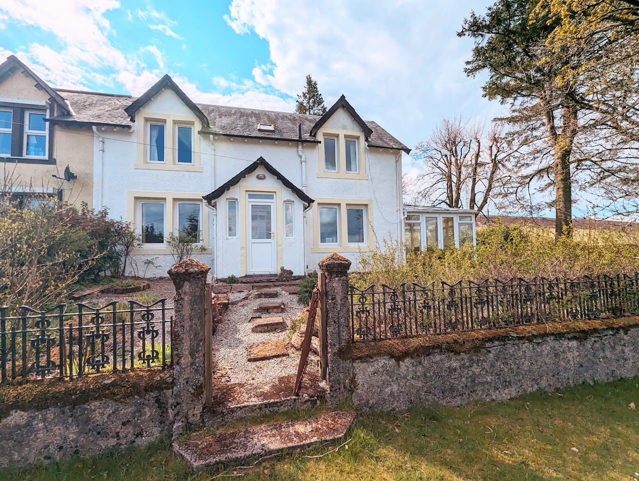 There is a public right of way between the front garden and the additional garden ground lying to the east.