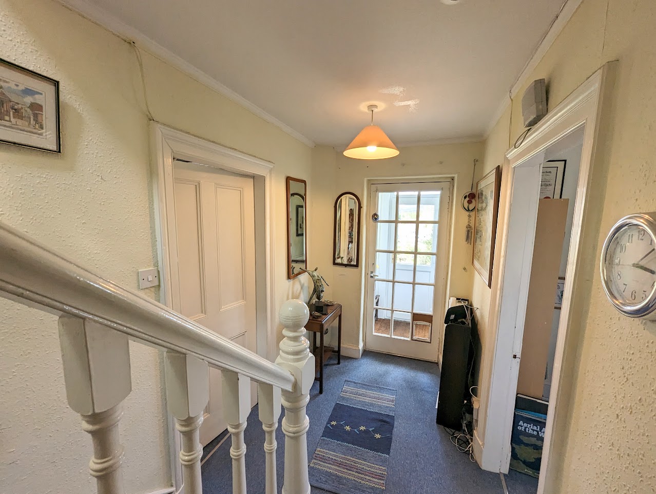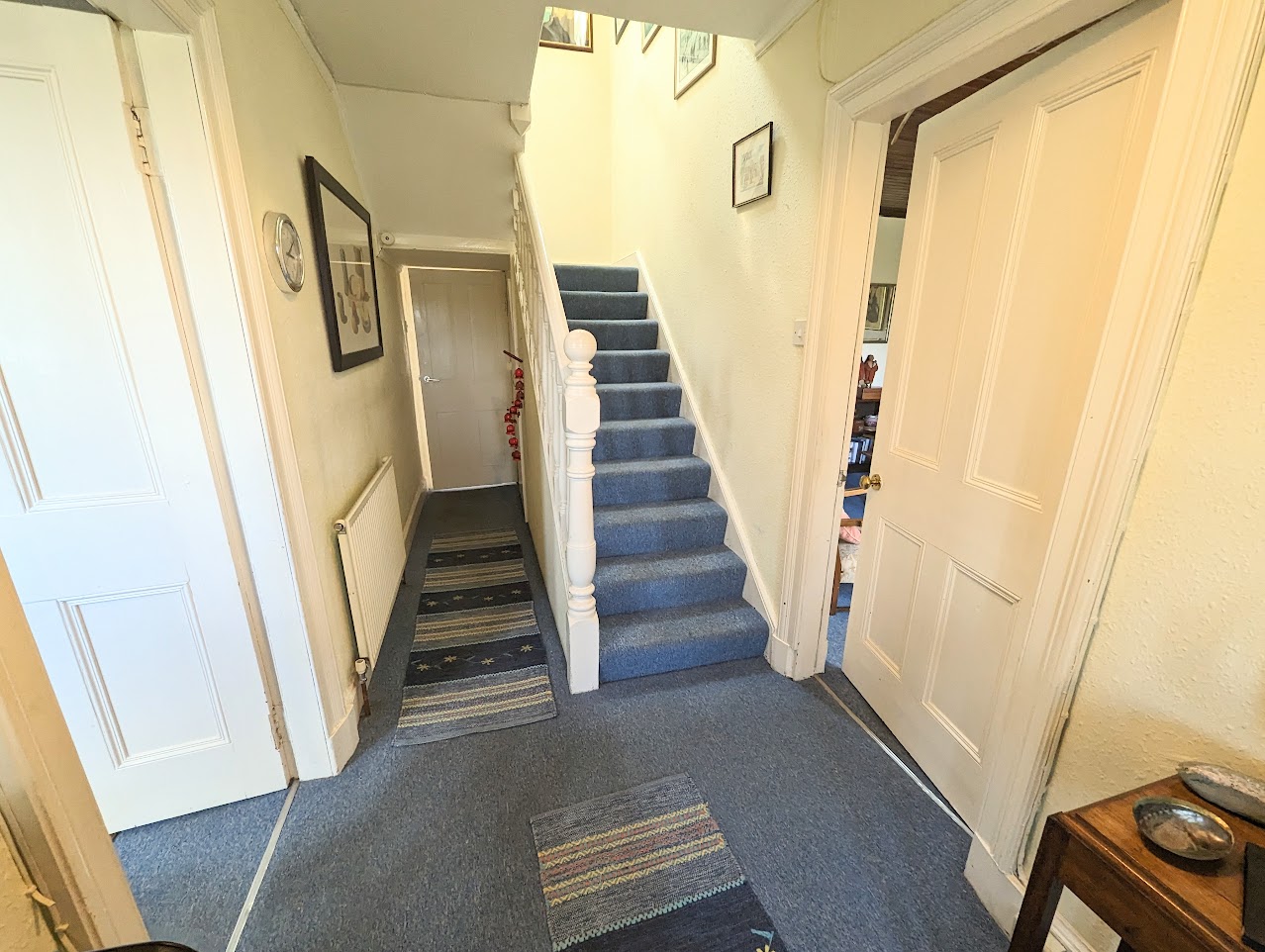 Entrance porch leading to hallway. Doors to dining room, living room, kitchen and stairs to first floor. Under stairs cupboard.