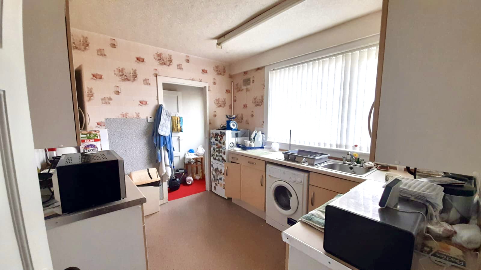 to rear, rear hall with cupboard