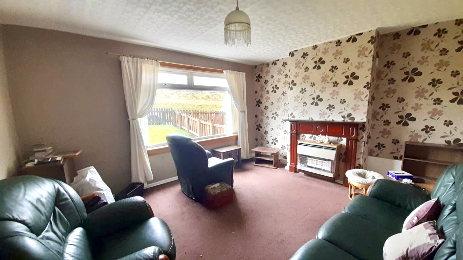 window to front, gas fire and