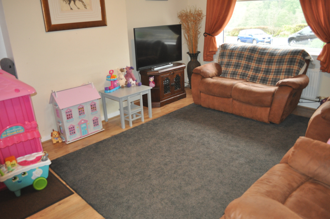 Large double glazed picture window to the front with fitted roller blind. Central heating radiator. Wood effect laminate flooring. TV aerial point. 6 x 13 amp power points. Door to the kitchen.