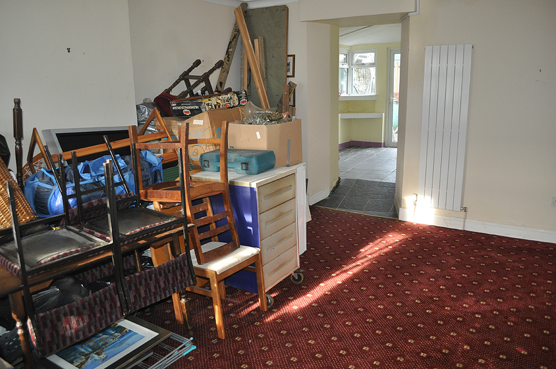 Three central heating radiators, double glazed window to the front. Door to the resident’s hallway. Open plan with open area measuring: 17’ 2” X 6’ 8” Approx. Two central heating radiators. Double glazed window. Fitted carpet. Open to bar area.
