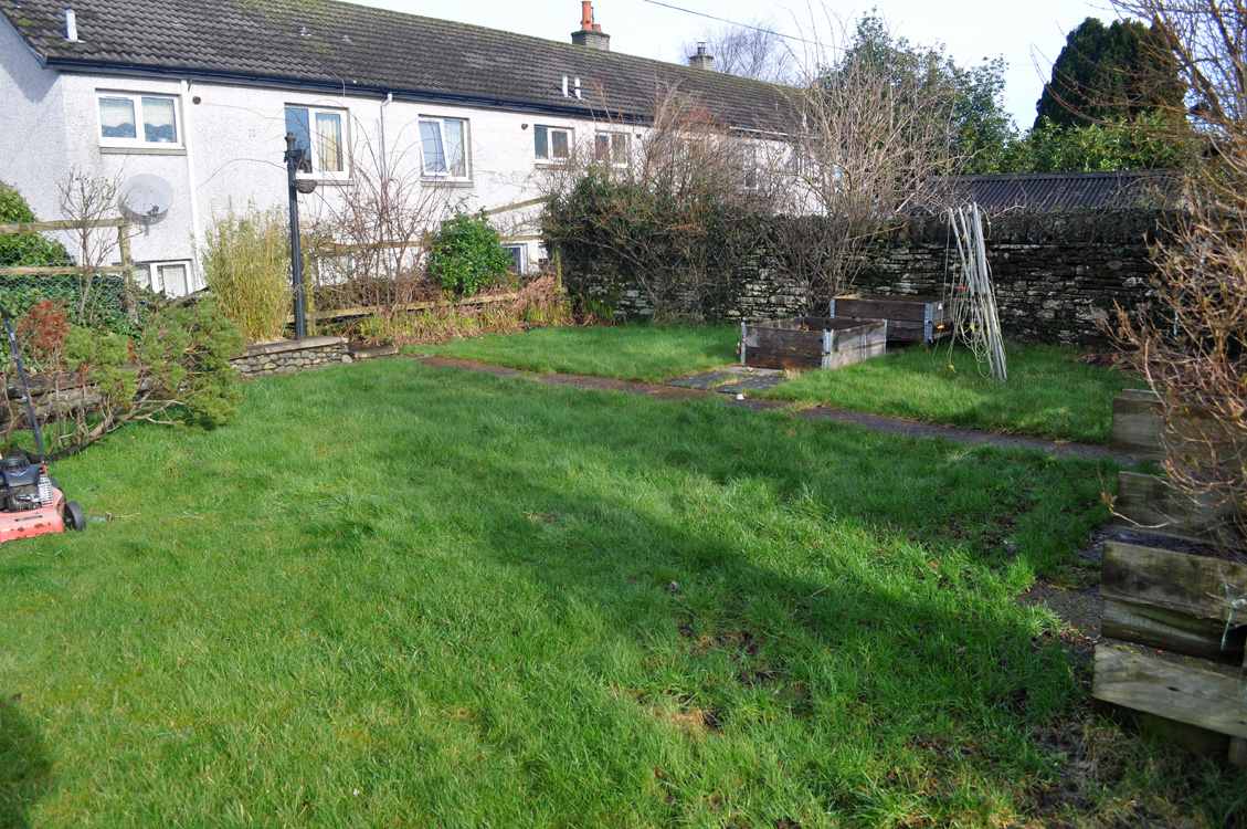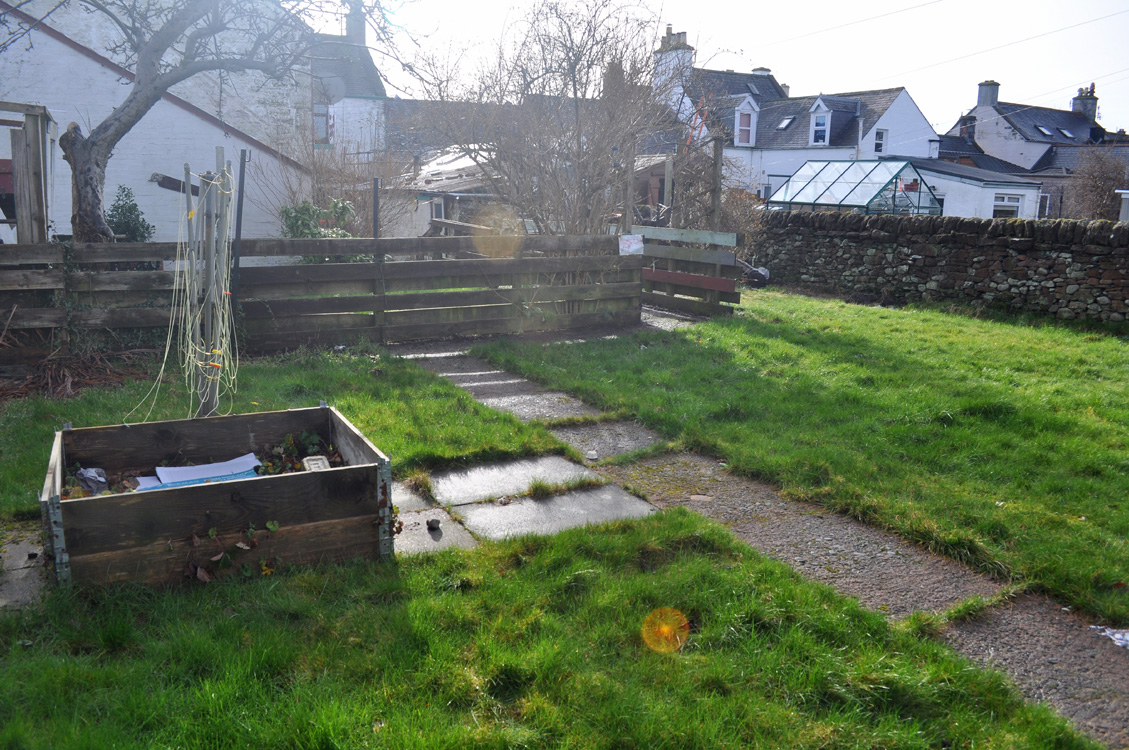 Paved patio area. Pend giving access from West Morton Street to the courtyard/garden. Stone build storage shed. Main garden laid principally in lawn.