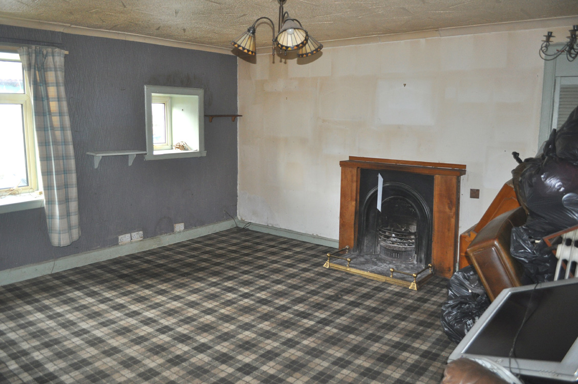 Double glazed window to the front with deep set sill. Fitted carpet. Two central heating radiators. Power points. Open archway and ramp to back room.