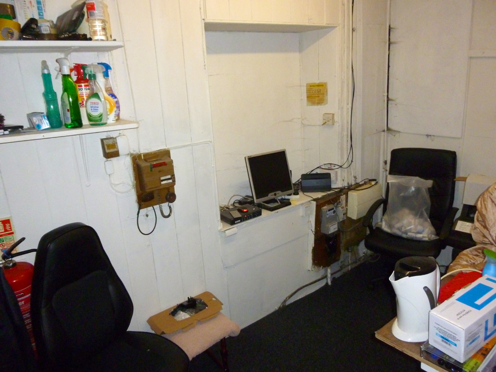 Two steps down to office with blocked off window. Telephone point. 2 x 13 amp power points.