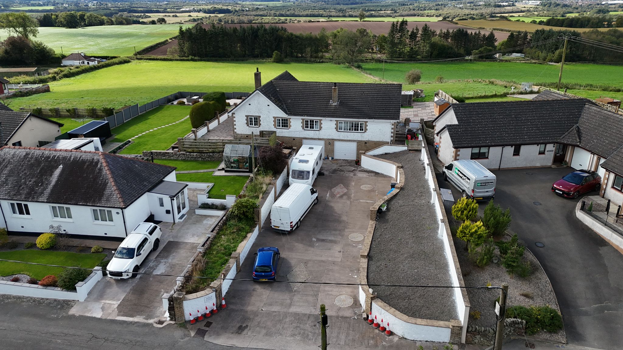 Spacious and impressive 3 bedroom house sitting in an elevated position with approximately 5.5 acres of land, and with an exceptionally generous amount of living space and beautiful surroundings. Benefits from underbuilding below with double garage, storage room, double glazing, parking for several cars and oil central heating. Torthorwald sits approx. 4 miles northeast of Dumfries Town Centre which has a wide array of shopping/amenities. The A75 links northwest following through South West Scotland or one can travel north/east to Glasgow/Edinburgh respectively whilst travelling south the A75 links with the M74/M6 south.