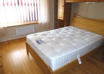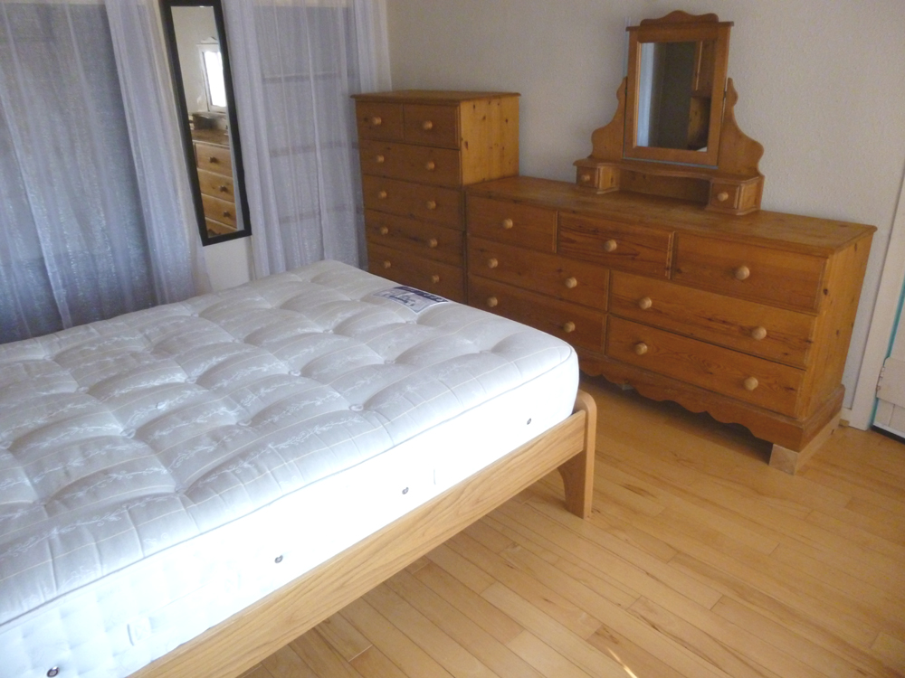 Double glazed window to the front with fitted blinds and deep set sill. Two alcove areas with hanging and shelving space. Electric heater. Shelved alcove. Solid Oak flooring. 4 power points.