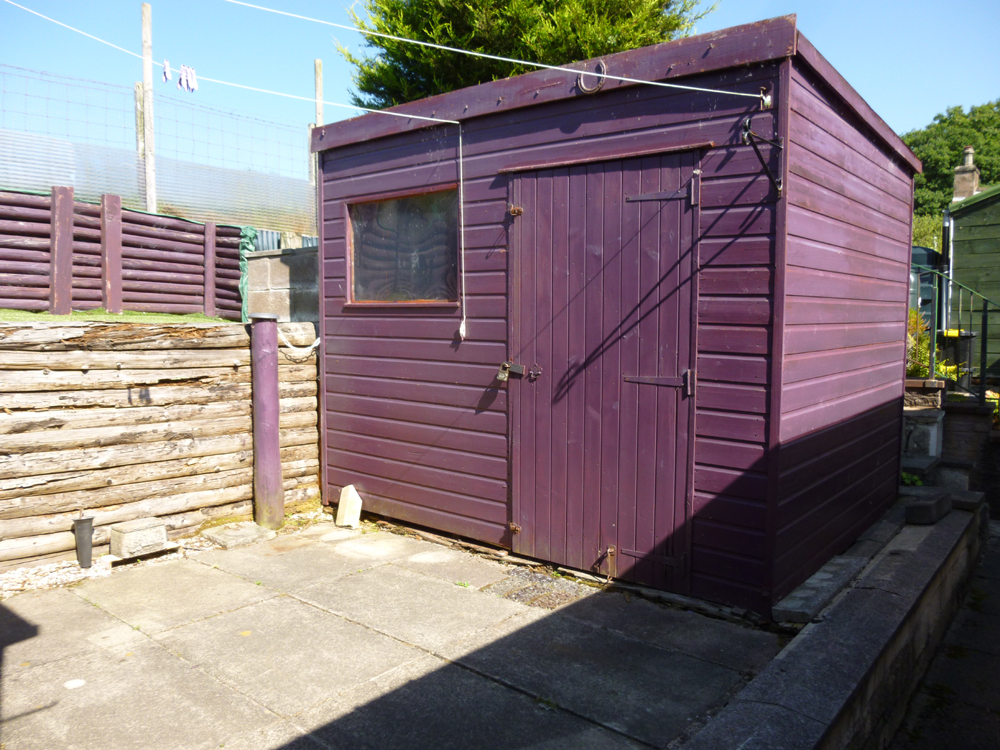 To the front the garden has been laid out principally in lawn with paved pathway leading to the entrance porch. There is a driveway to the side of the property with lean to log store and pedestrian access to the rear garden. The rear garden is terraced and is principally laid in paving with area of astro turf and wood bark. Wooden summer house and shed included in sale. Outside water faucet and power point.