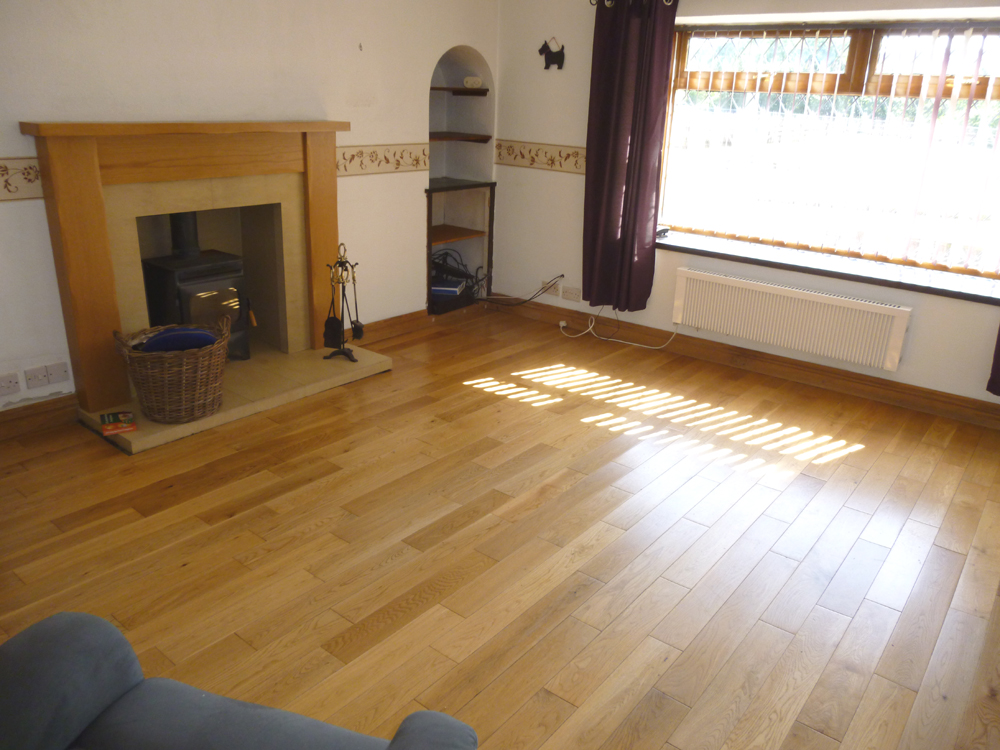 Wood effect laminate flooring. Electric heater.