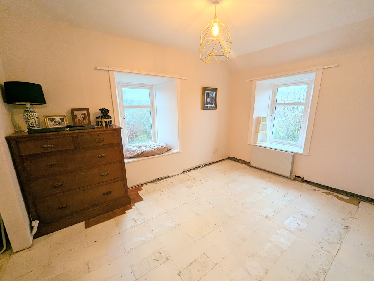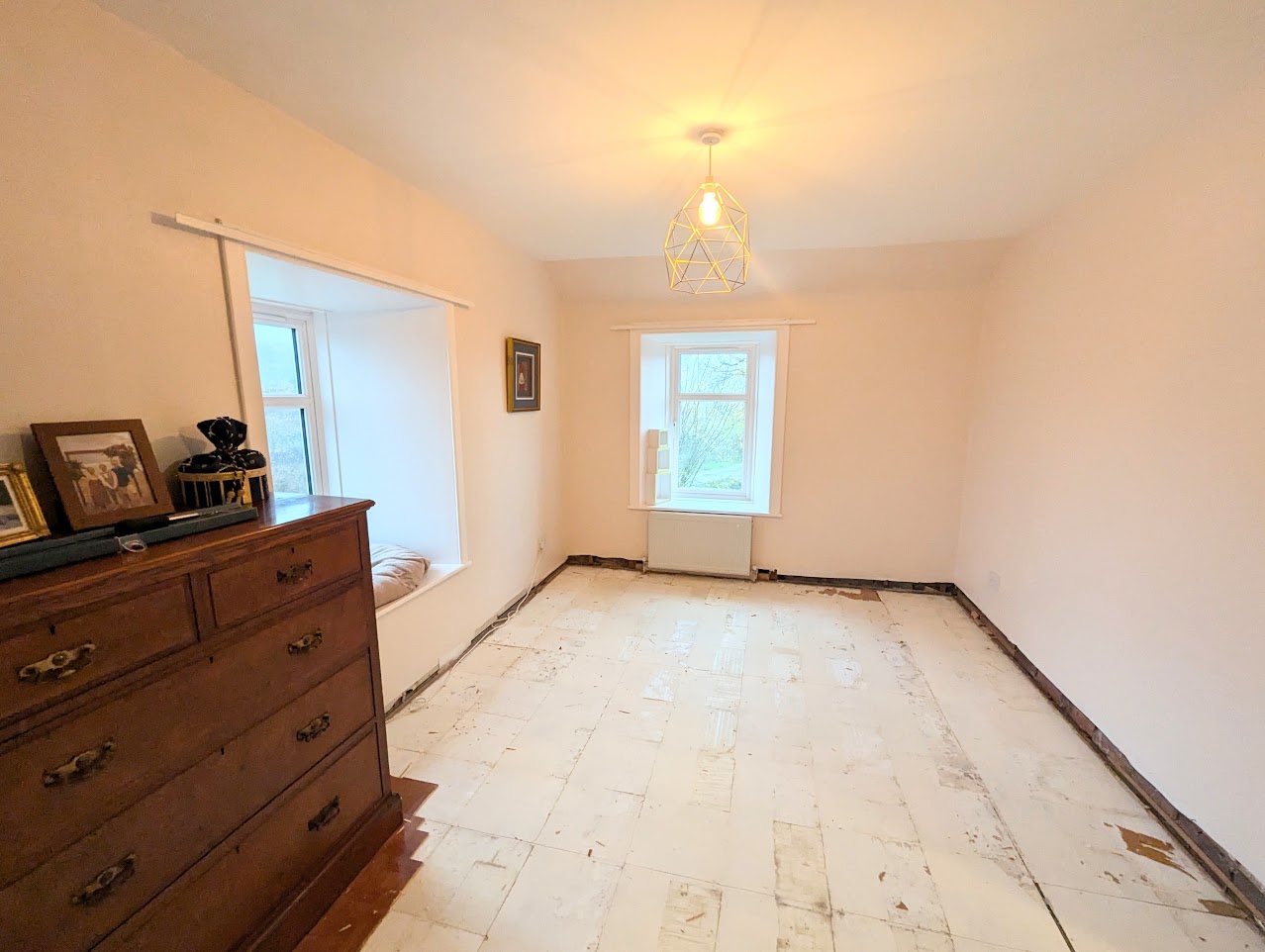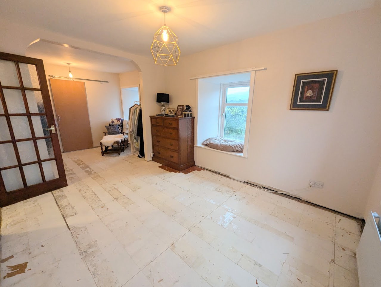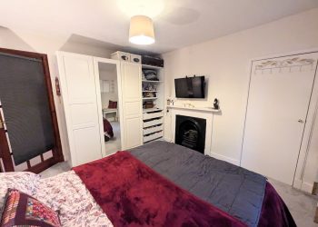 Master bedroom is a large room with two windows to the front and one to the side. Walk-in cupboard which has been plumbed and can be turned into an en-suite. Two windows to the garden.