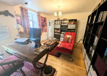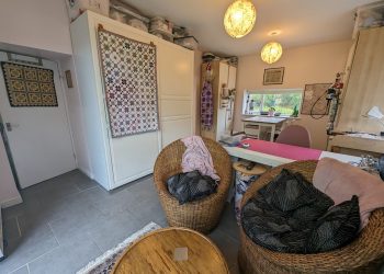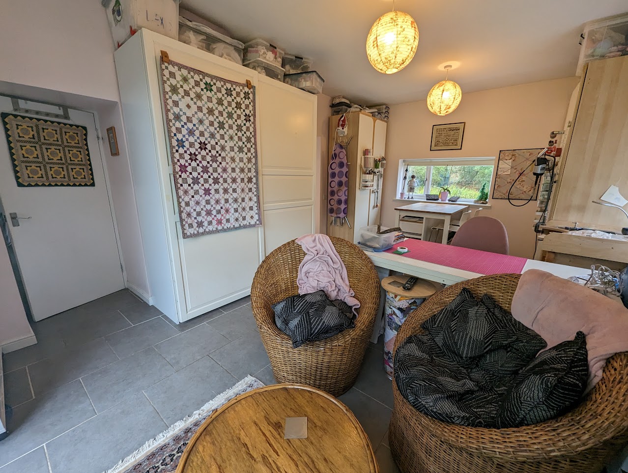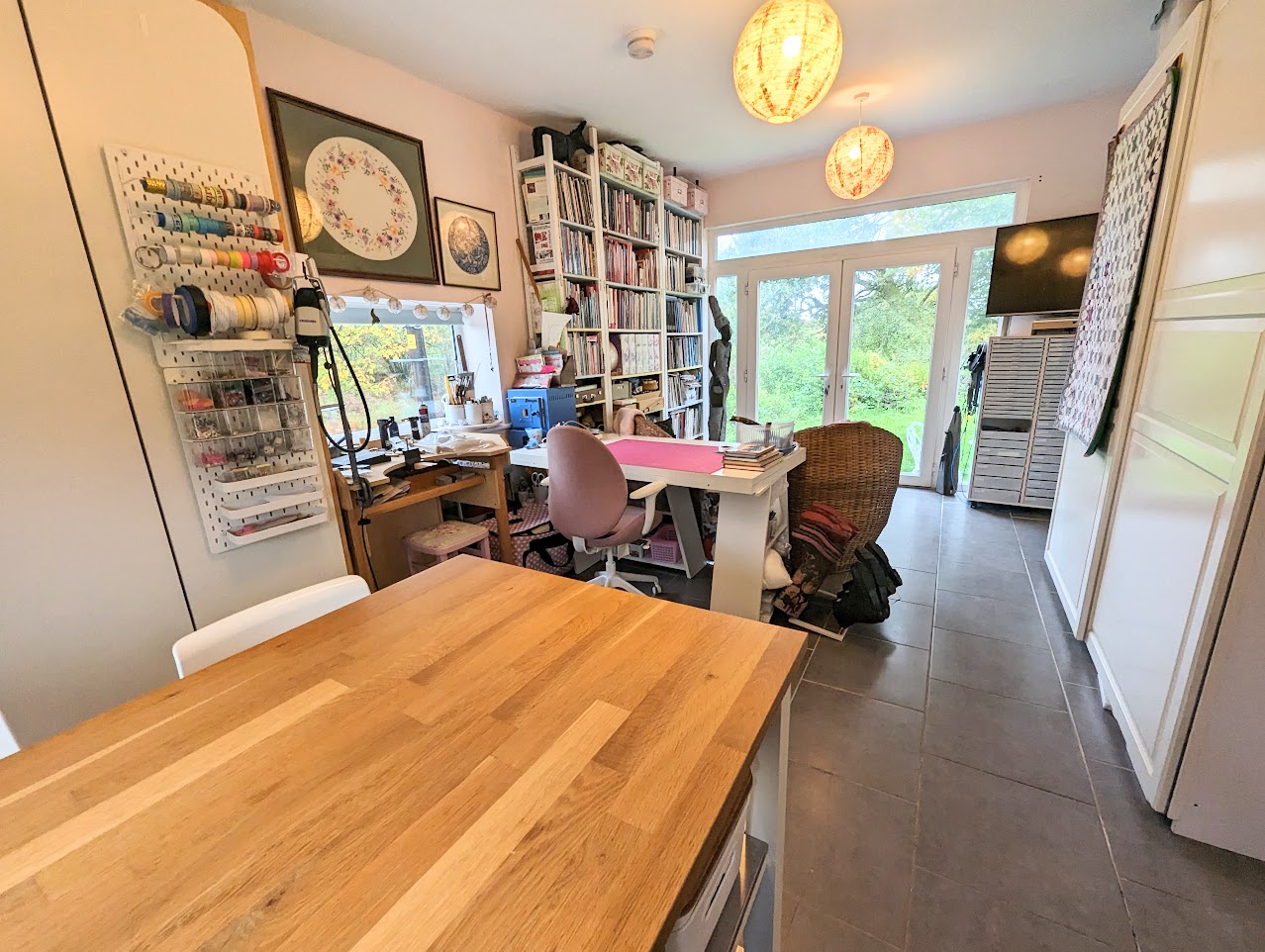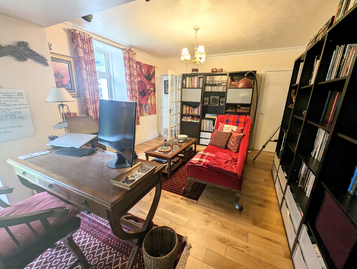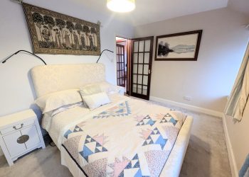 Spacious room currently used as a studio with en-suite shower room. Could be used as a bedroom. Windows to side and rear and patio doors to the garden.