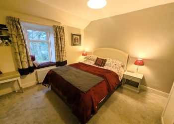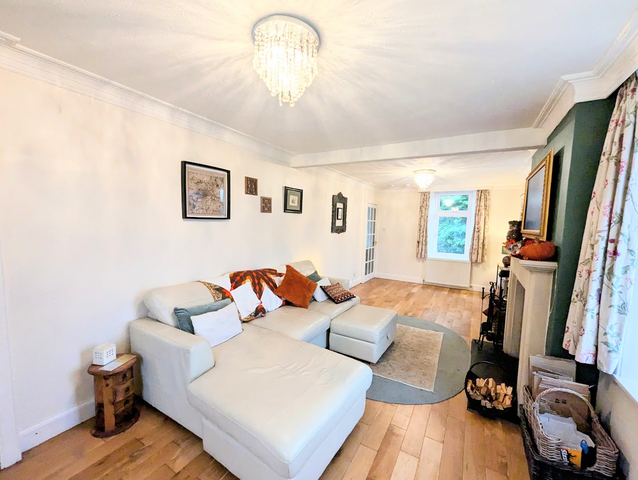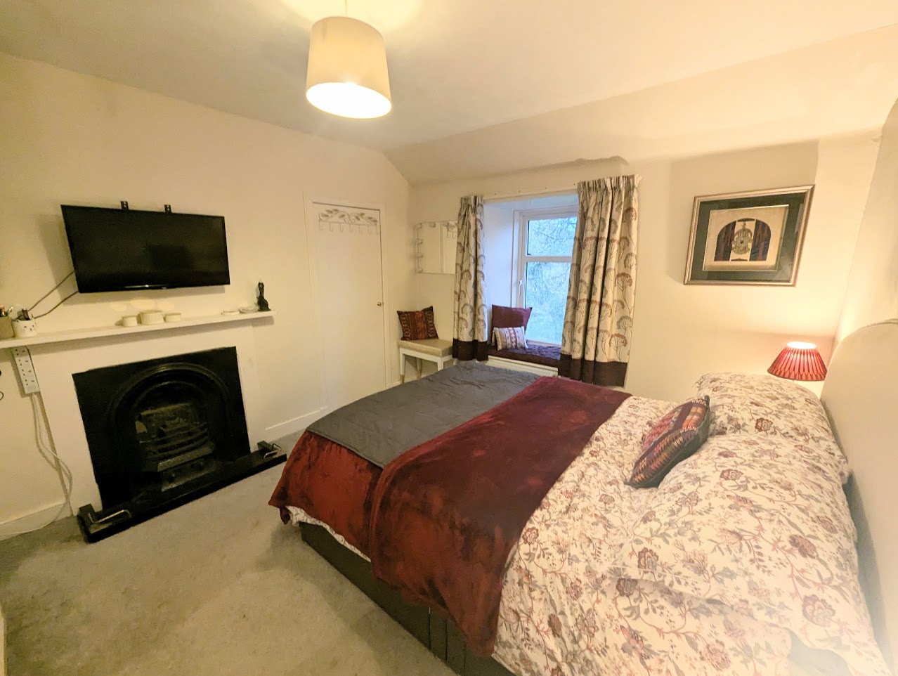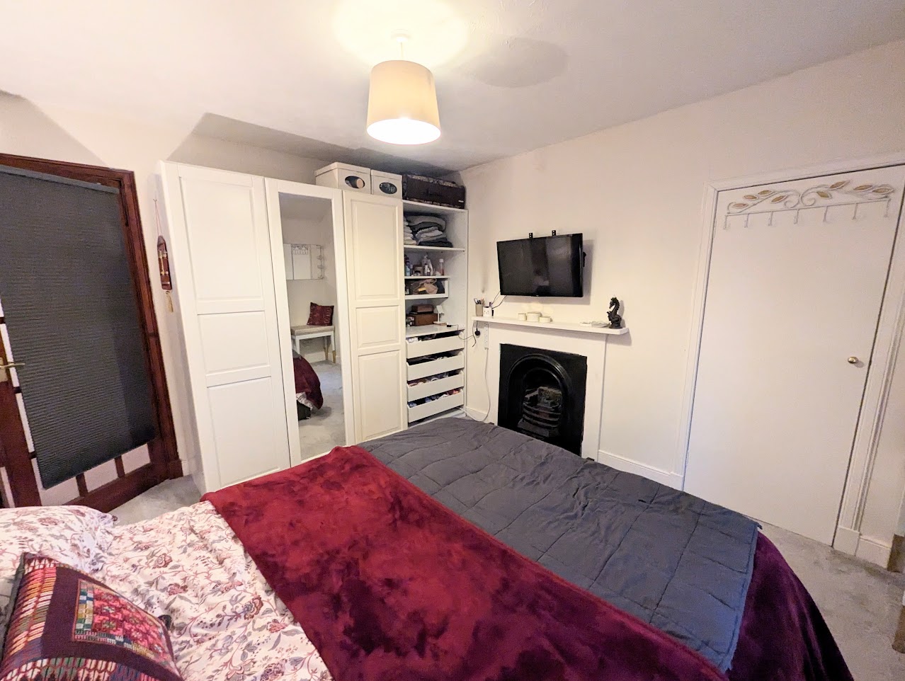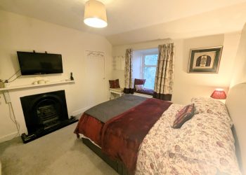Bedroom 3 is a double bedroom with window to the garden. Fireplace and wooden mantel.