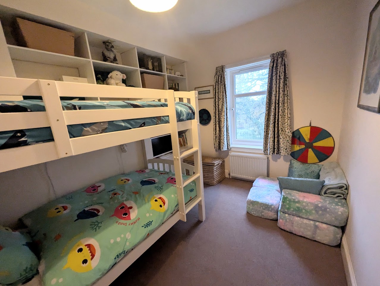 Bedroom 4 with window to the garden. Fitted shelves and loft hatch.