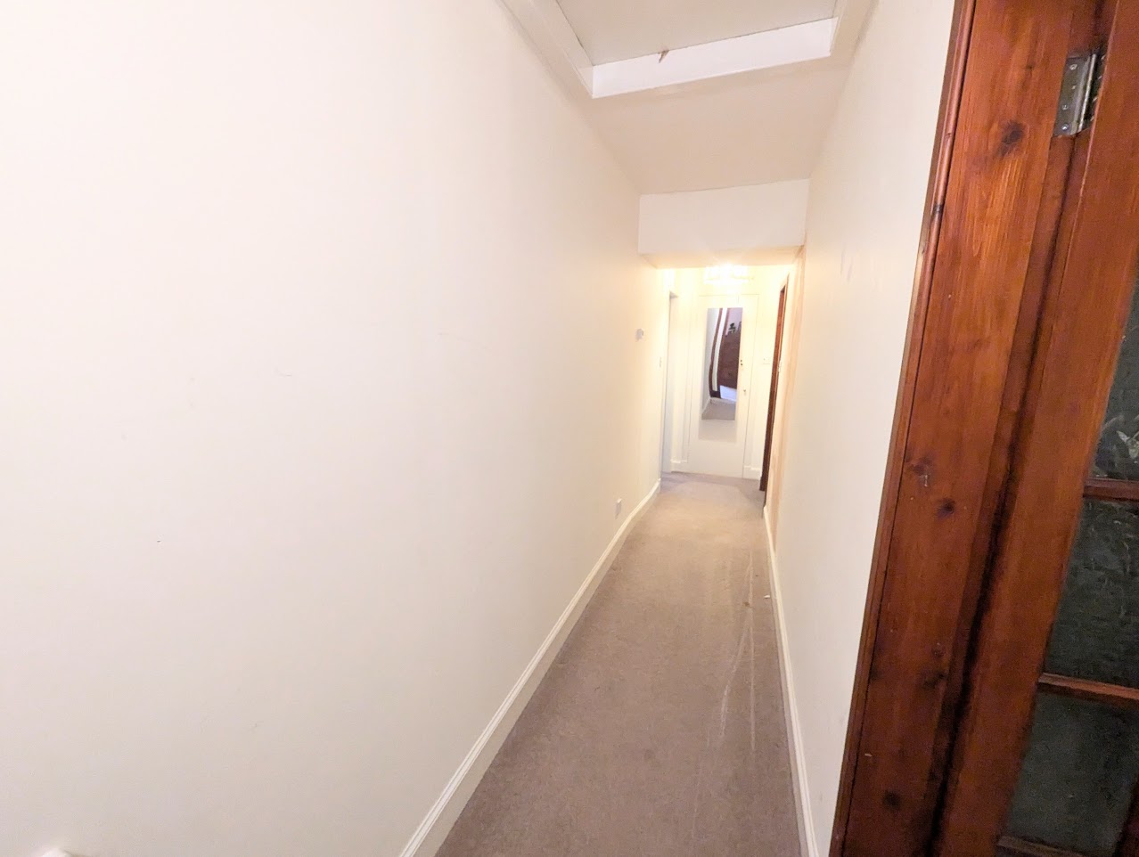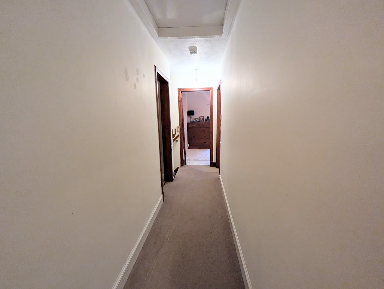 Stairs to first floor with hand rail. Upstairs hallway with door to 4 bedrooms and bathroom. Built-in airing cupboard.